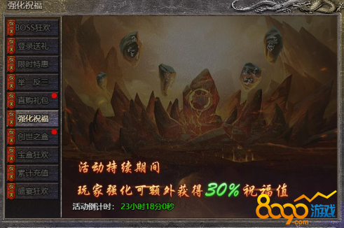 1.活动持续期间,玩家强化可额外获得30%祝福值