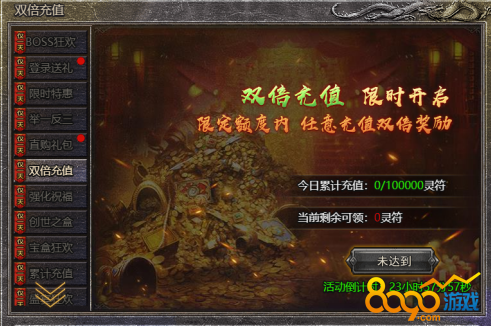 1.活动期间,限定额度,任意充值可得双倍灵符奖励;