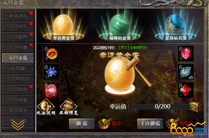 3.每次砸蛋均能获得幸运值,幸运值满后即可领取一份奖励