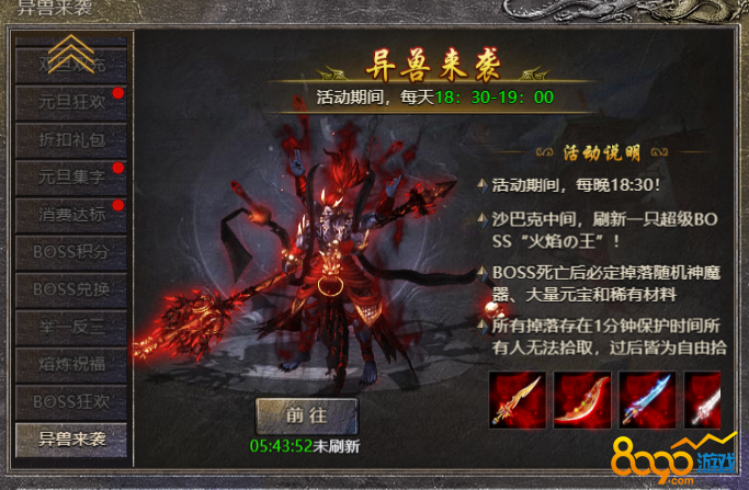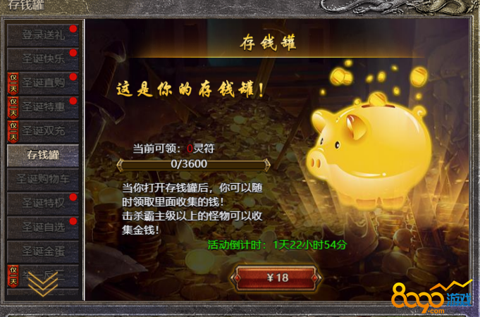 1.活动期间每次击杀霸主级以上怪物可以收集金钱。