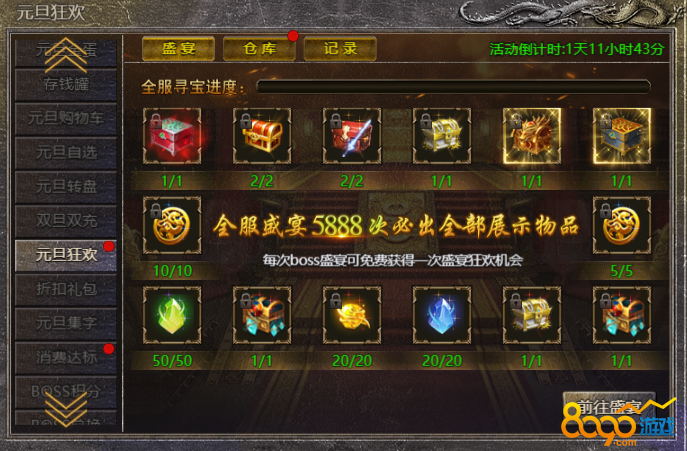 2.达到全服盛宴进度,将必会获得一份展示物品哦!