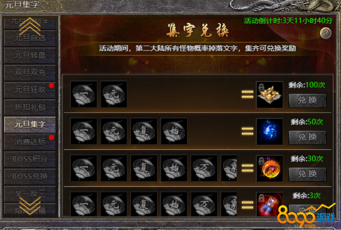 2.文字可直接使用获得少量的元宝,也可消耗对应的文字兑换物品