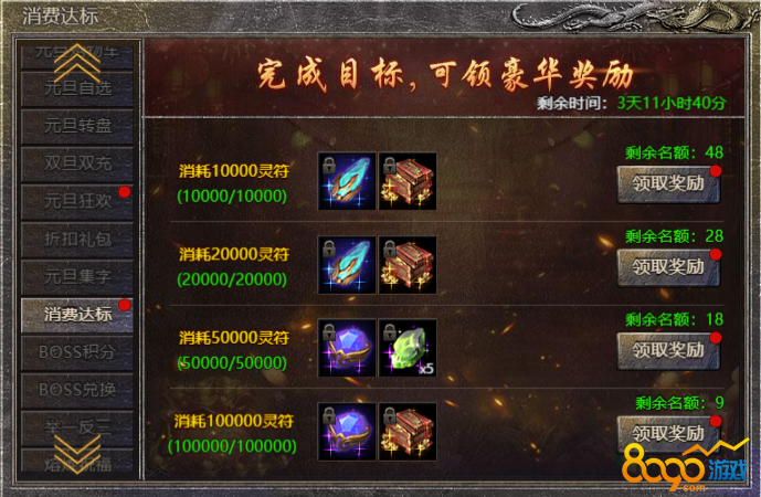 1.活动期间,玩家累计消费达到指定数量灵符即可领取一份奖励;