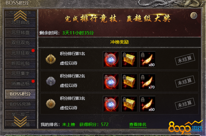 2.玩家boss积分累计达到指定数量即可参与冲榜