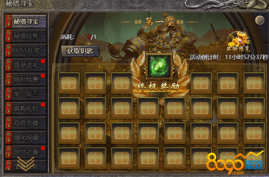 2.秘塔分为7层,每层都有一个终极奖励,抽到终极奖励可前往下一层;