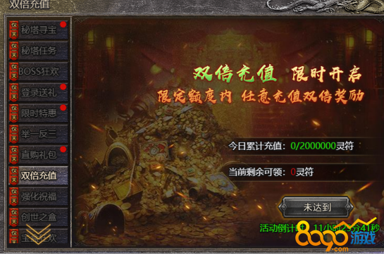 1.活动期间,限定额度,任意充值可得双倍灵符奖励