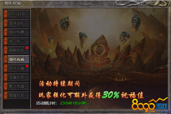 1.活动持续期间,玩家强化可额外获得30%祝福值