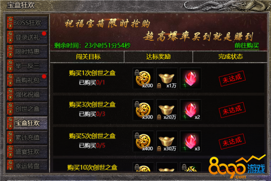 1.活动期间,购买创世宝盒达到一定次数可领取奖励;