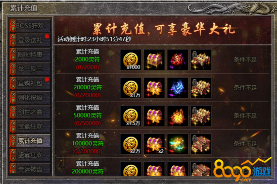 1.活动期间,每充值一定的灵符可领取一份奖励;