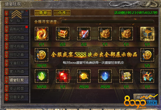 2. 达到全服盛宴进度,将必会获得一份展示物品哦!