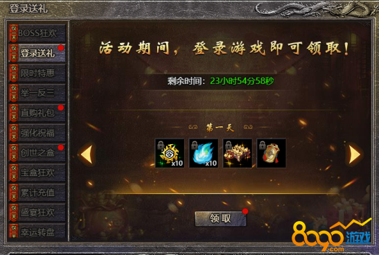 1.活动期间,玩家每天登录游戏,可以在活动界面中领取一份奖励;