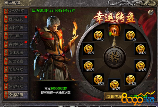 1.活动期间,每充值200000灵符可获得一次抽奖机会,上限10次;
