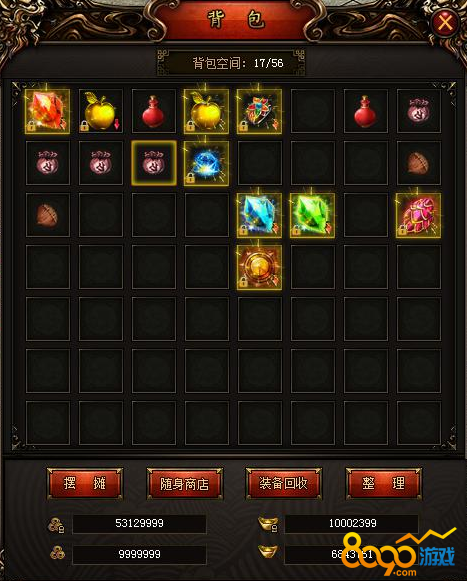 搜索"8090网页游戏"在游戏中点击“B”键可以打开游戏中的背包,背包中可以进行一些简单的操作