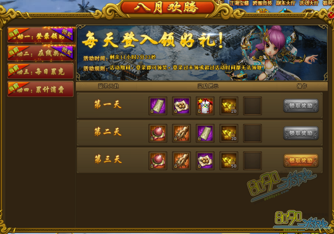 活动规则:活动期间登录即可领取相应奖励(全部绑定);