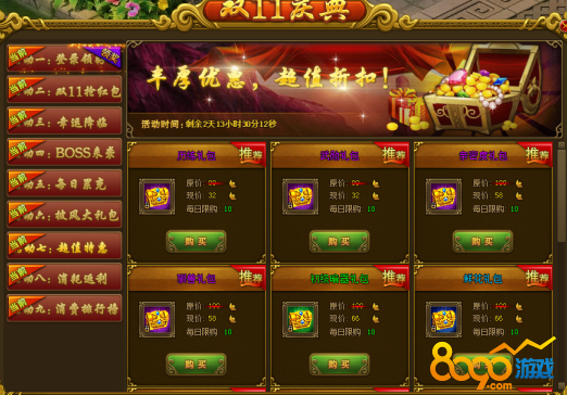 活动规则:活动期间,珍贵道具打折出售,折扣诱人,玩家花费较少元宝即可直接购买;
