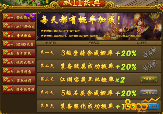 活动规则:活动期间,将会增加指定道具合成概率及江湖宝藏中寻到极品道具的概率;