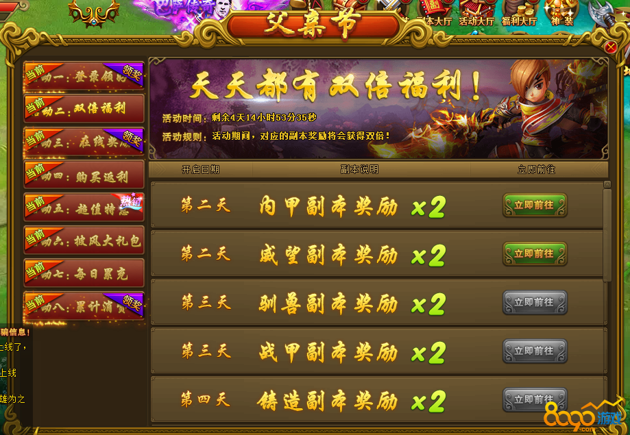 活动规则:活动期间,对应的副本奖励将会获得双倍。