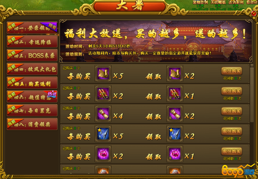 活动规则:活动期间内,除市场购买外,购买一定数量的指定道具可以获得奖励。