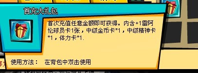 活动内容:游戏内充值任意金额即可获得首充大礼包