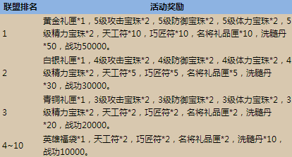 活动截止时,游戏内联盟排名前10的联盟玩家均可获得丰厚的活动奖励: