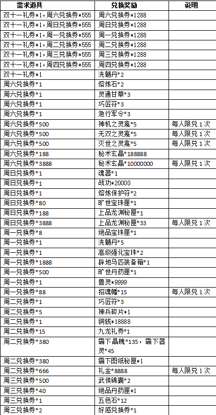 3.活动期间,玩家可以使用活动道具兑换奖励。