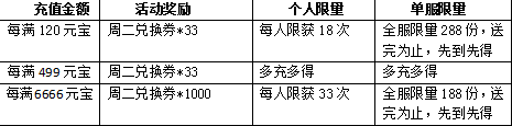 2. 活动期间,玩家在指定时间内充值一定数额的元宝,即可获得系统赠送的奖励。