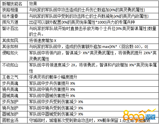 每个技能可以提升10级,技能升级影响技能效果X以及技能附加的将领属性。