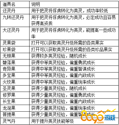 英灵可通过食用灵果升级。英灵食用灵果后,获取经验的同时,积攒灵果所带来的属性提升,