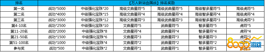 国战杀兵参与即有奖,前100名奖励翻倍。