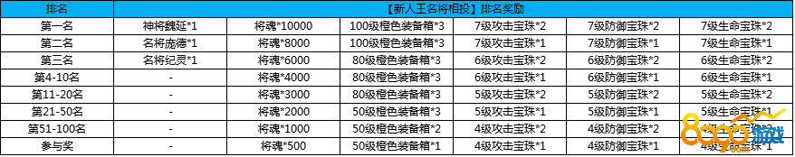 5.新人王名将相投(截止日期开服第七天的22:00)