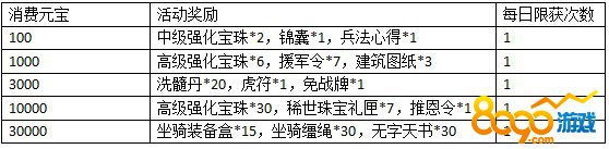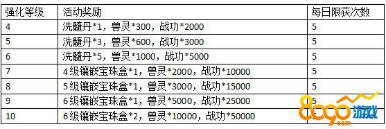 活动说明:活动期间玩家强化任意装备或坐骑达到指定等级即可获得道具奖励。