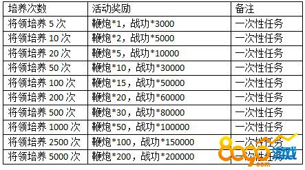 同时,活动期间玩家进行将领培养到指定次数,还可获得额外奖励。
