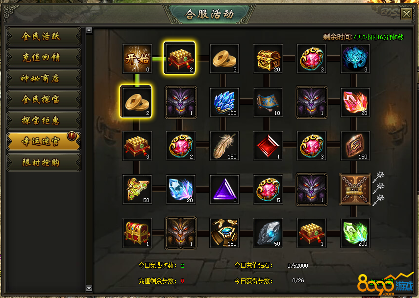 活动说明:活动期间内每天赠送2次移动次数,不同选择方式获得不同槽位奖励,神奇迷宫百变奖励等您来拿(奖励每日重置、每日从零开始)