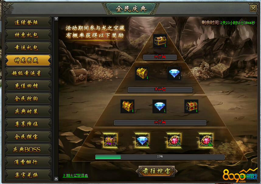 活动说明:活动期间,参与龙之宝藏将有几率获得神龙密藏奖励