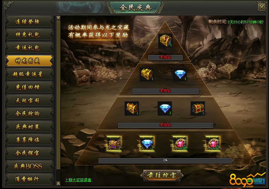 活动说明:活动期间,参与龙之宝藏将有几率获得神龙密藏奖励
