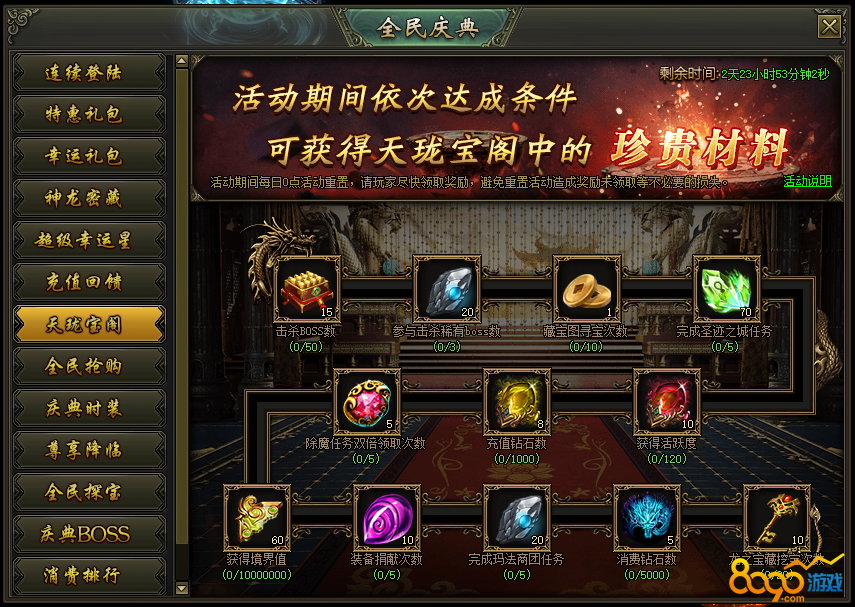 活动说明:活动期间,每日完成天珑宝阁内条件,即可领取超值奖励