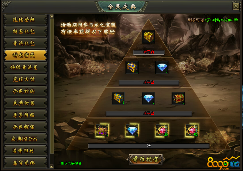 活动说明:活动期间,参与龙之宝藏将有几率获得神龙密藏奖励