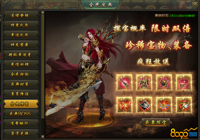 活动说明:活动期间,龙之宝藏产出圣装的概率限时翻倍,极品圣装、珍稀宝物大放送!