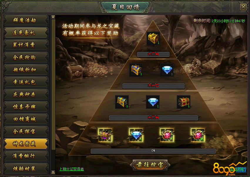 活动说明:活动期间,参与龙之宝藏则有几率额外获得神龙密藏的物品