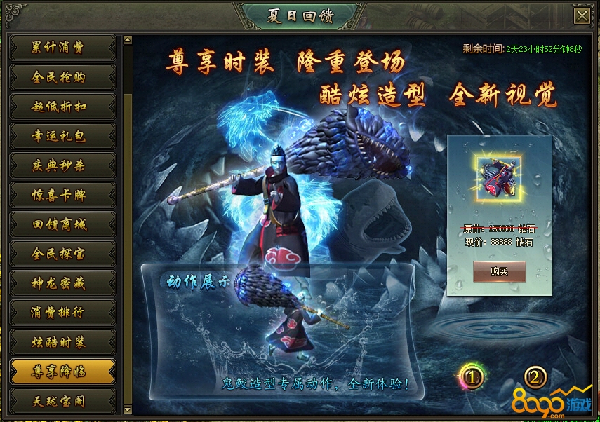 活动说明:活动期间,绝版时装限时出售,炫酷拉风外型、超高属性都在这里!