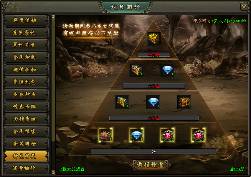 活动说明:活动期间,参与龙之宝藏则有几率额外获得神龙密藏的物品