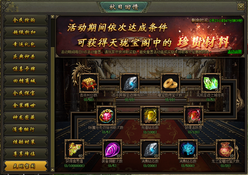 活动说明:活动期间,完成天珑宝阁任务可获得大量奖励!