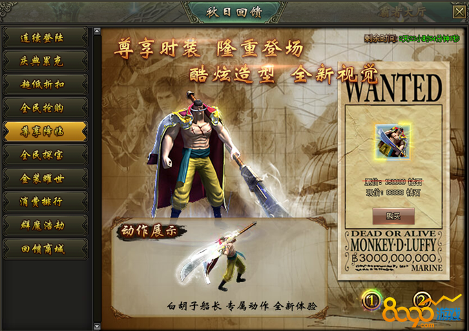 活动说明:活动期间,尊享时装隆重登场,炫酷造型,全新视觉!