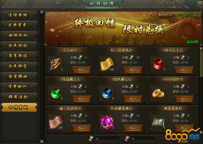 活动说明:活动期间,可使用充值回馈卷和消费回馈卷兑换大量奖励