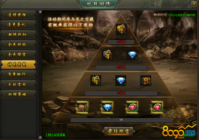 活动说明:活动期间,参与龙之宝藏则有几率额外获得神龙密藏的物品