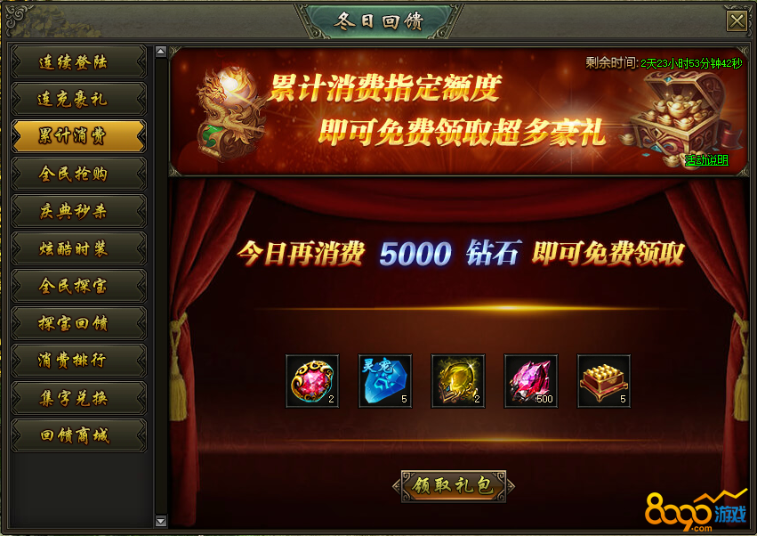活动说明:活动期间,累计消费达到指定额度,即可领取超多豪礼