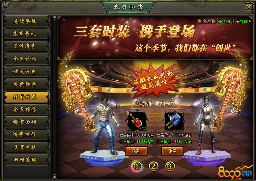 活动说明:活动期间,绝版时装限时出售,炫酷拉风外型、超高属性都在这里!