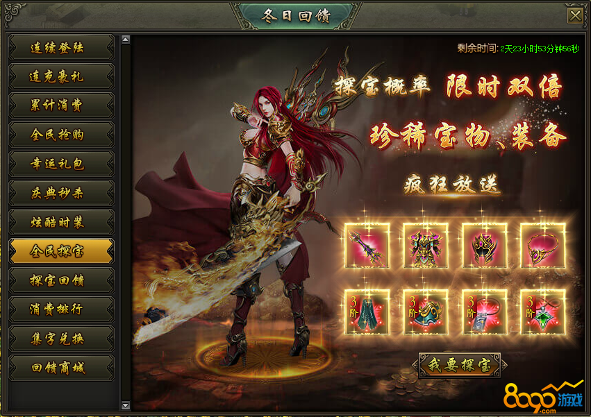 活动说明:活动期间,龙之宝藏产出圣装的概率限时翻倍,极品圣装、珍稀宝物大放送!