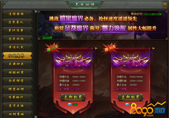 活动说明:活动期间,租赁征战魔界称号,能力唤醒属性大幅提升!