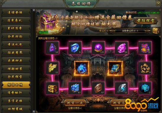 活动说明:活动期间,龙之宝藏每探宝十次赠送一张宝藏回馈卷,可继续在探宝回馈抽大奖